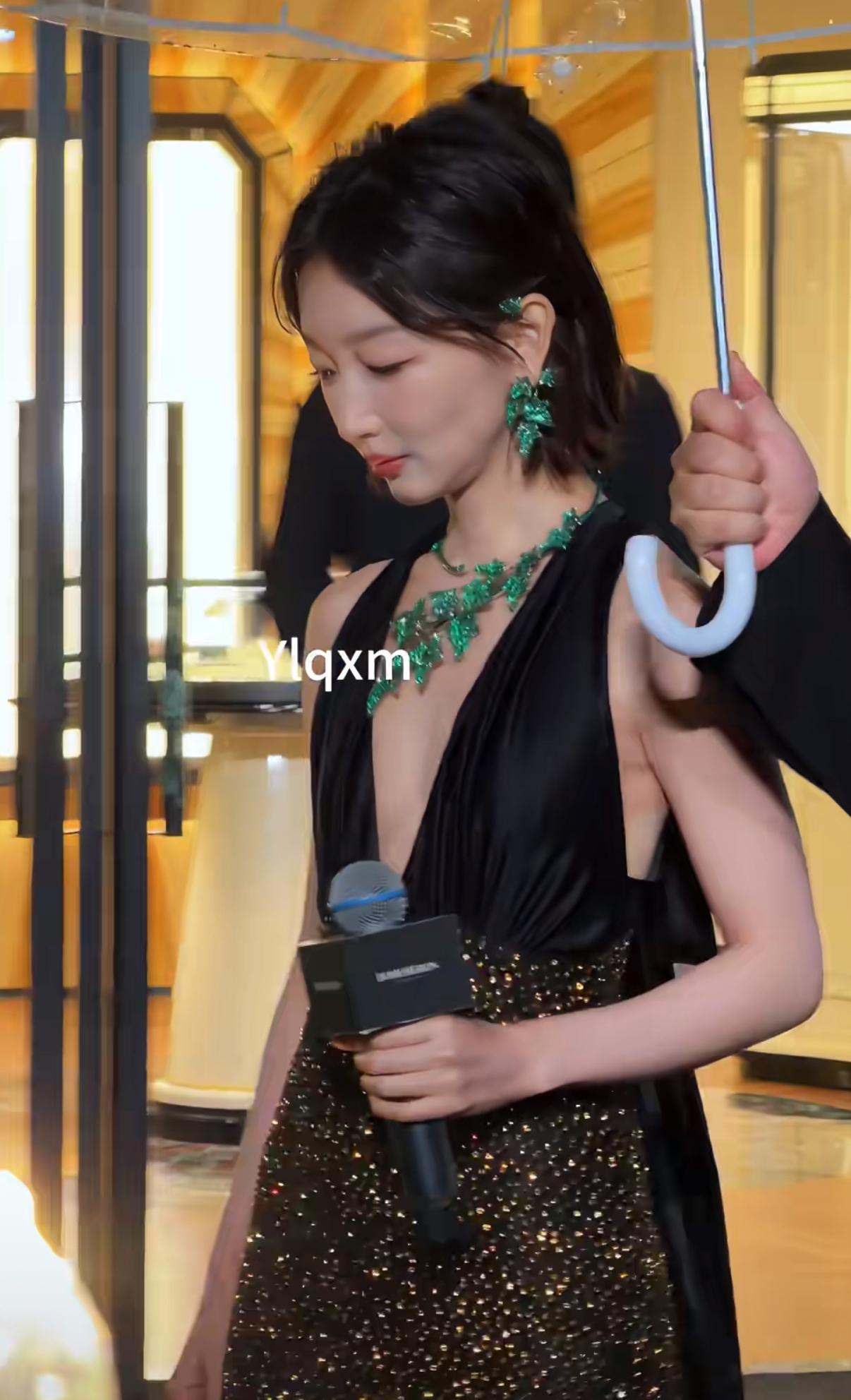 周冬雨又“真空上陣”?穿深V露背裙戴3000萬珠寶,凍得眼鼻通紅