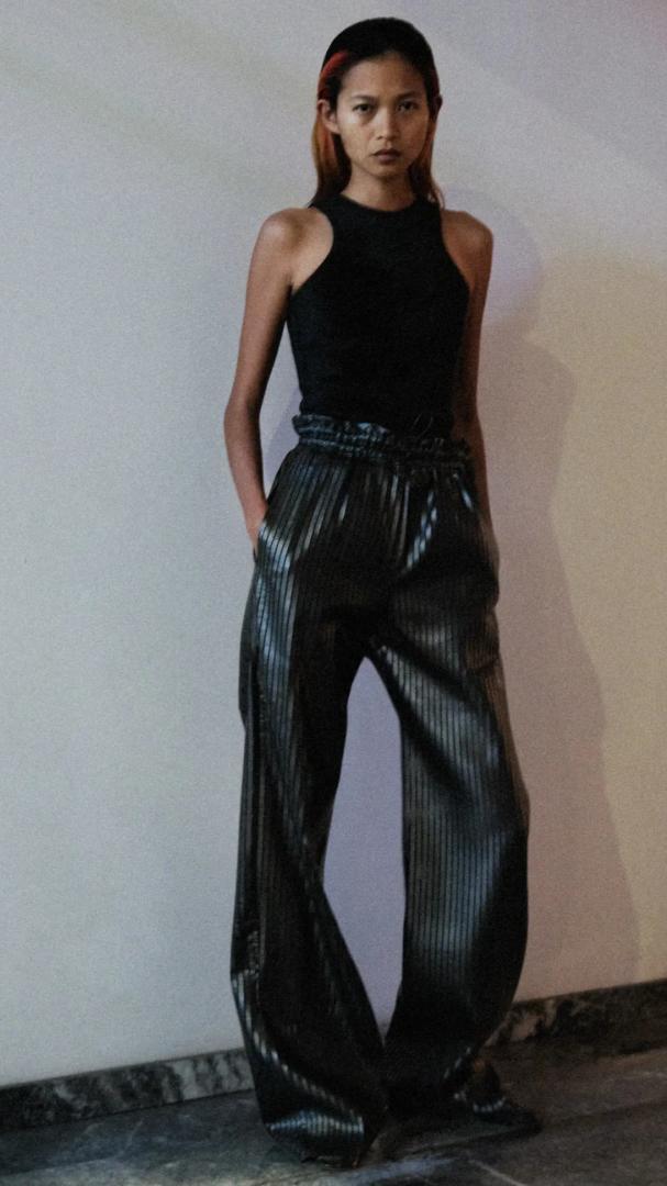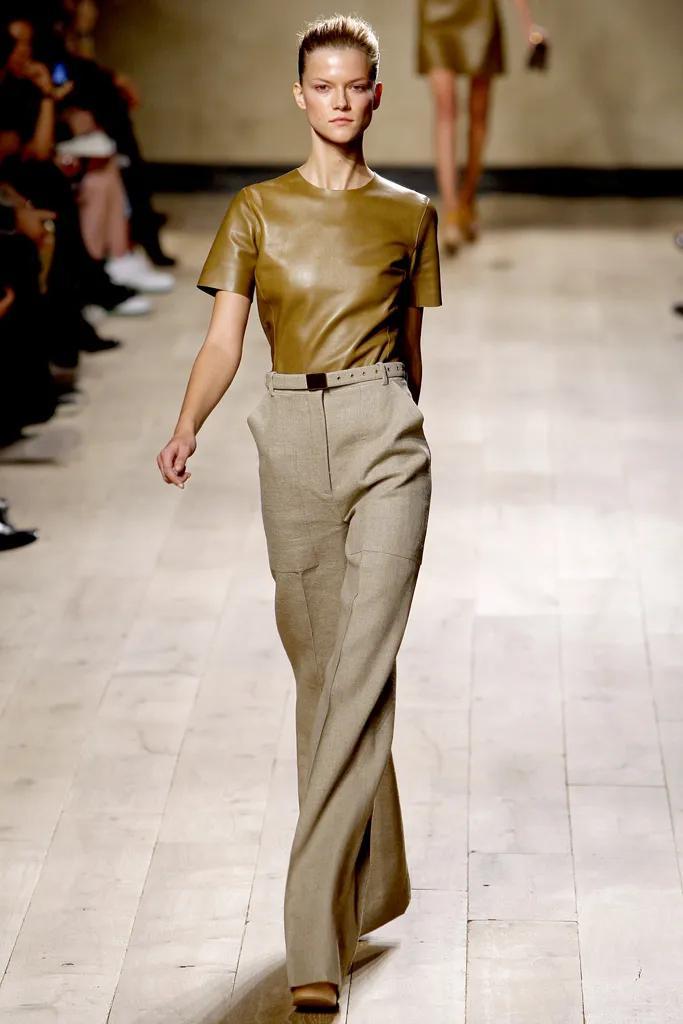 她有一件很有標誌性的單品,也是用皮做的——2010年Céline首秀上的那件皮T恤。用柔軟輕薄的皮革,剪裁成簡單的基礎款T恤。▼