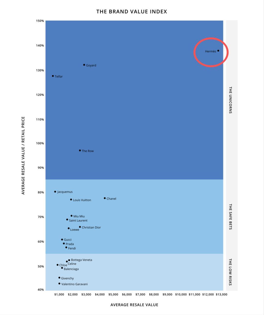 在二手奢侈品裏,愛馬仕算是相當保值的。時尚機構Rebag的數據▼