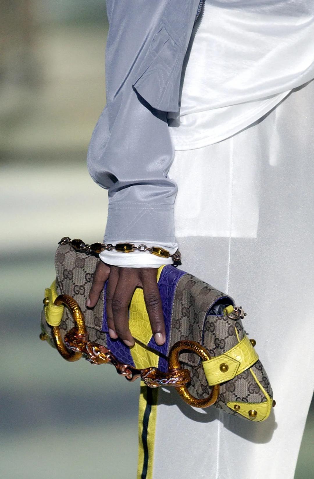 比如2003年秋冬(左)和2004年春夏(右)系列,他特意復刻了Gucci經典的馬銜扣——這也是肯豆最愛的vintage元素之一。▼