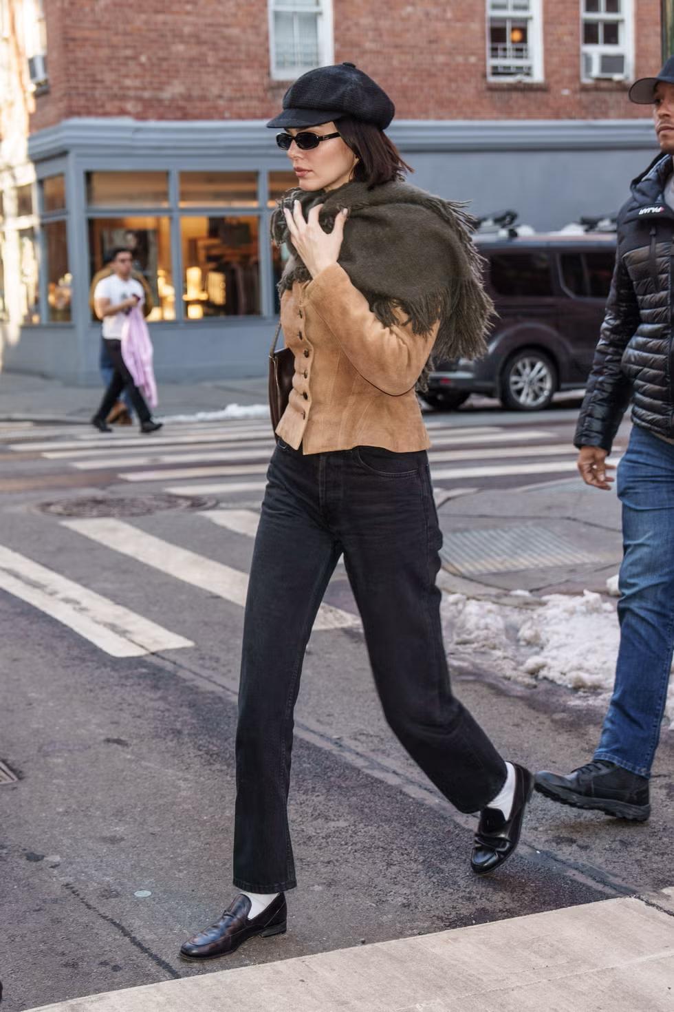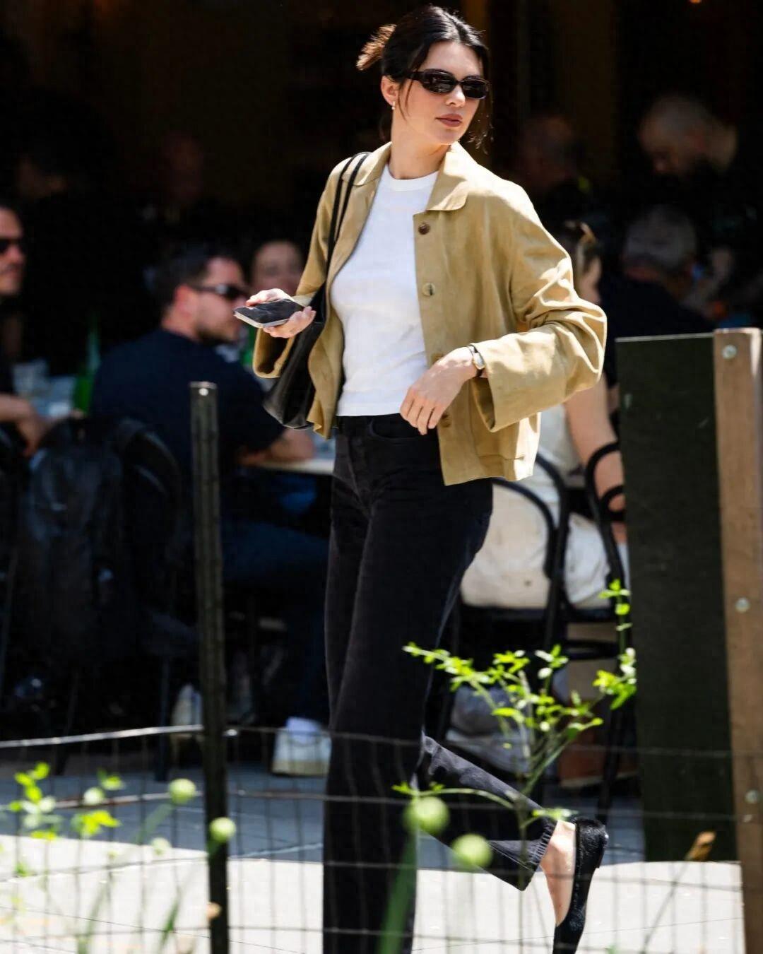 有次拍攝,肯豆借了一雙The Row的樂福鞋樣品,鞋裏面還寫着各種手寫的標記。結果實在太好穿了,她竟然直接“據爲己有”,再也沒還回去。沒錯,就是我們開頭提到的那雙。