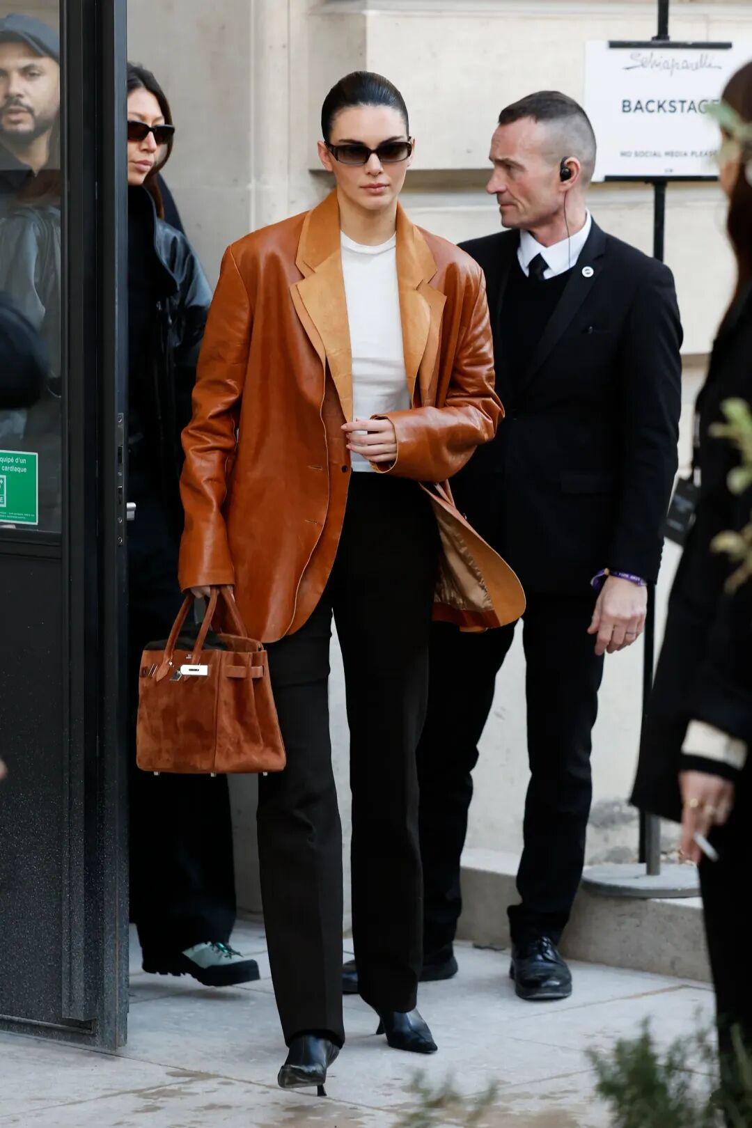 同月在巴黎,她又背了一隻復古Kelly,顏色看着有點微妙差別,不確定是不是同一只。但有了復古包加持,配Alaïa連衣裙,風格確實更優雅、更有故事。▼