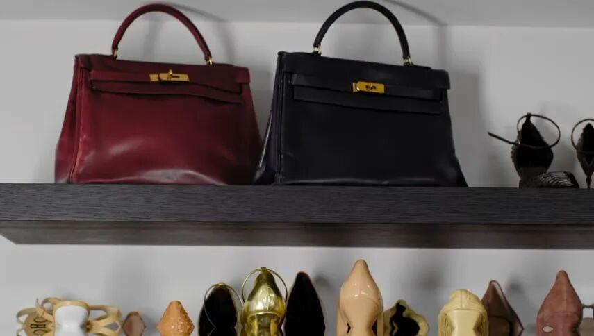 不過這次錄視頻,真正讓她滿心歡喜、專門從櫃子裏翻出來展示的,是一隻背得很舊很舊的酒紅色Kelly。
