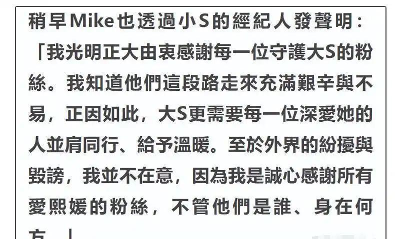 S媽看似什麼都沒做,但其實她早就通過律師鄧高靜與大S粉絲切割了,那條沒有授權任何人以大S名義做後援會或公益活動的動態,就是最好的證據。