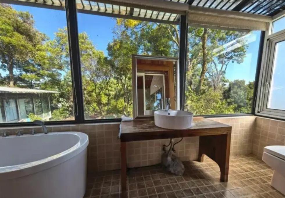 不久後,房子裝修好了,她大方地曬出了房子的佈局,不過這衛生間三面都是窗戶,網友擔心沒有隱祕性,可看着外面的參天大樹,以及空曠無屋的環境,才發現是我們想多了。