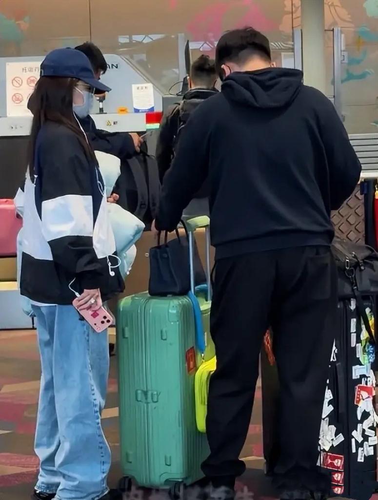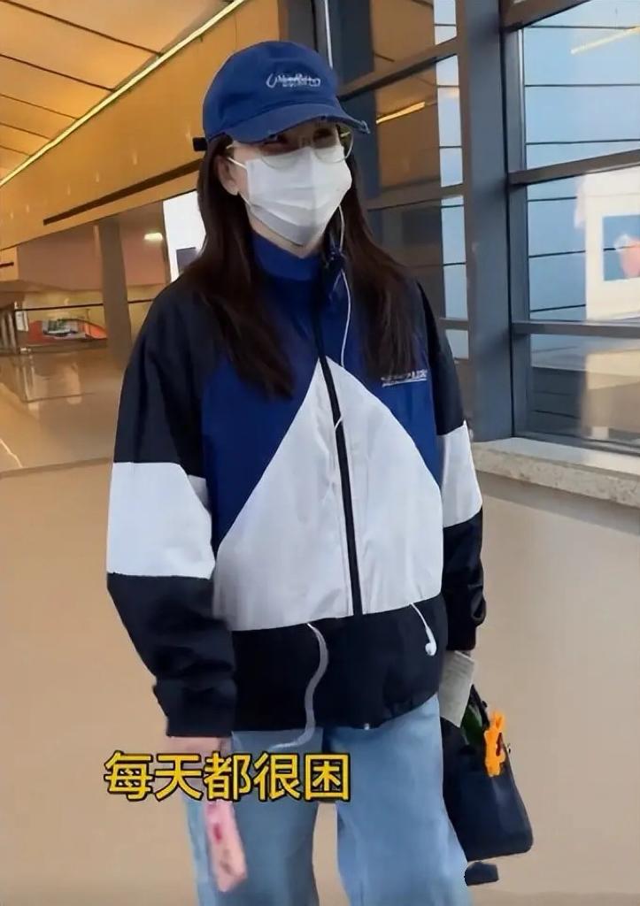 這次機場偶遇闞清子,她穿撞色的運動外套搭配了藍色牛仔褲,遠遠地看這個模樣就像個女學生。