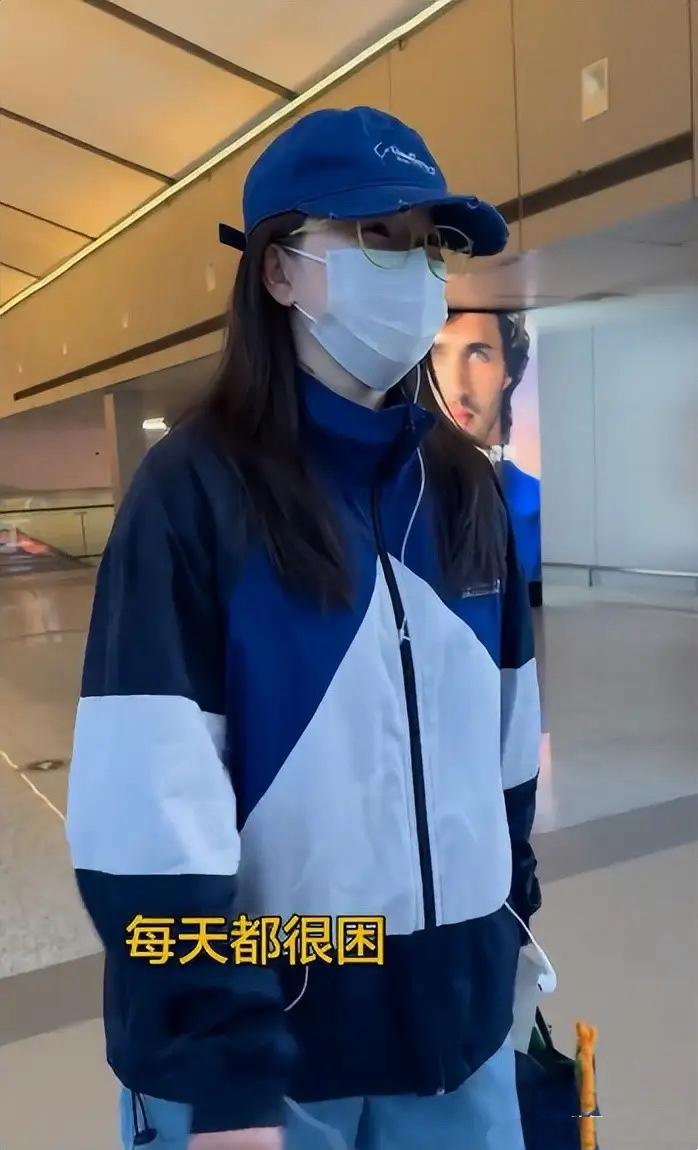 應該是出發參加錄製浪姐的節目,闞清子穿了一件藍白撞色的運動裝,搭配了藍色棒球帽,還戴着口罩,把自己包的很嚴實。