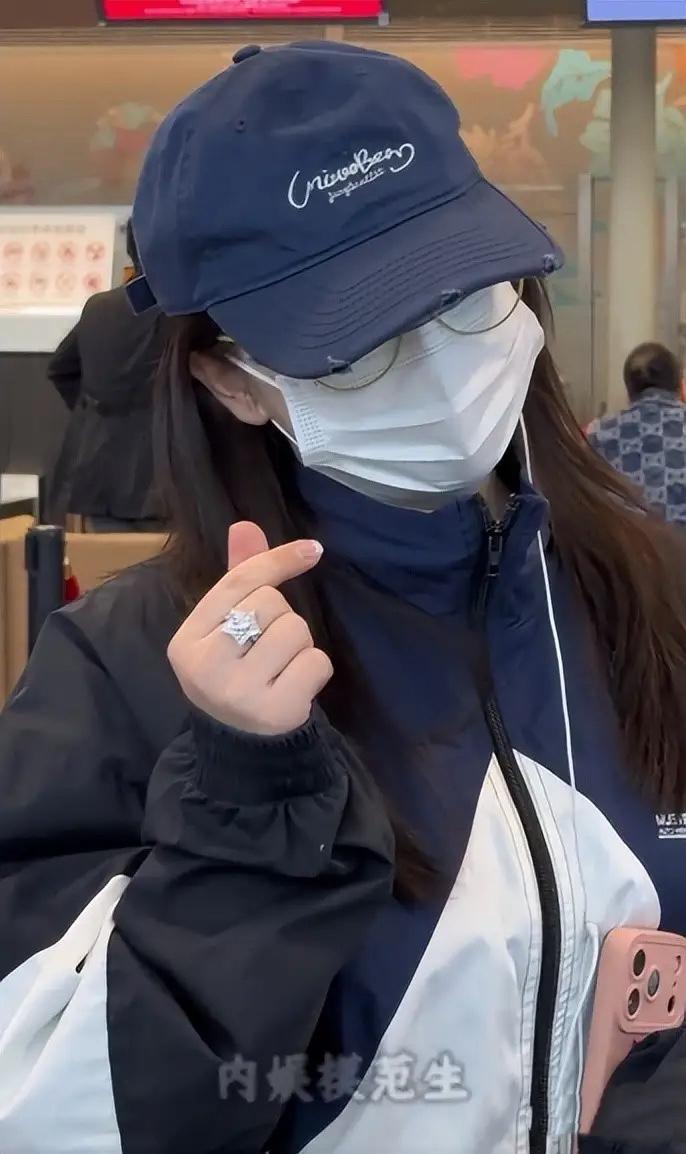 闞清子當天狀態很好,雖然害怕被認出來。但還是熱情的和網友打招呼了,她伸手對着鏡頭比心的時候,手上閃耀的大鑽戒也太醒目了。