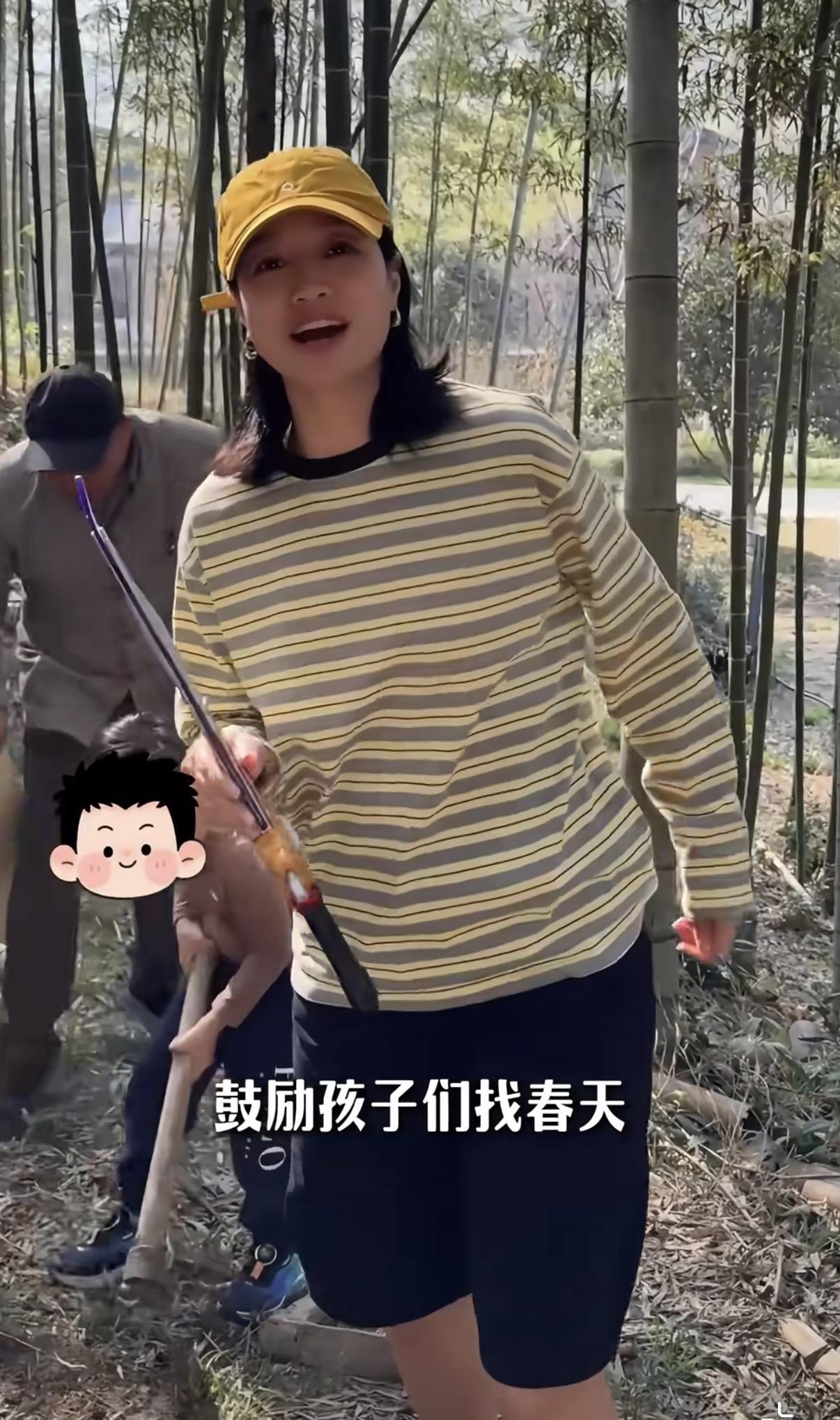 值得一提的是,朱丹和週一圍只有一兒一女,不過這次上山挖筍他們帶了3個孩子。