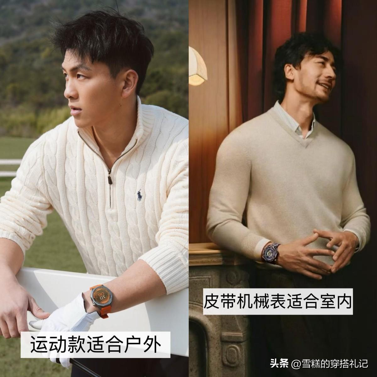 若是戶外場合,推薦佩戴智能腕錶,運動感較強,顯得整個人陽光又有活力,室內復古場景,便可以搭配皮帶機械腕錶,充滿着文藝浪漫的氣。
