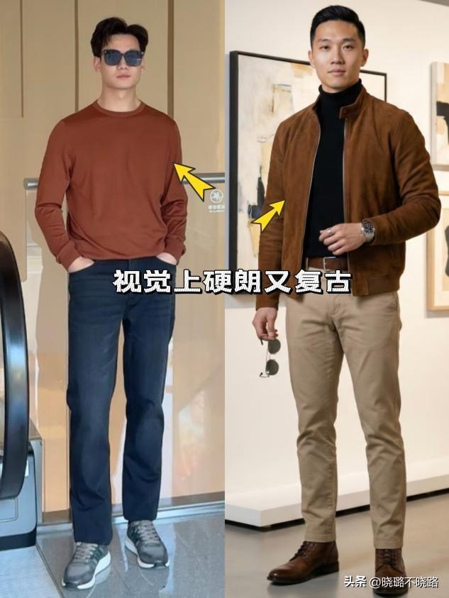 焦糖駝色是暖調大地色,溫暖、厚重又有質感,完美契合成熟男性的穩重氣質,比藏藍更有溫度,比灰色更有層次,完全不會顯老,反而穿出貴氣與氣場。暖調色彩能提亮黃皮,讓氣色更紅潤、通透,擺脫蒼白倦態;色調濃郁卻不張揚,自帶復古高級感,穿上顯得大氣、從容,有閱歷、有品位的感覺撲面而來。