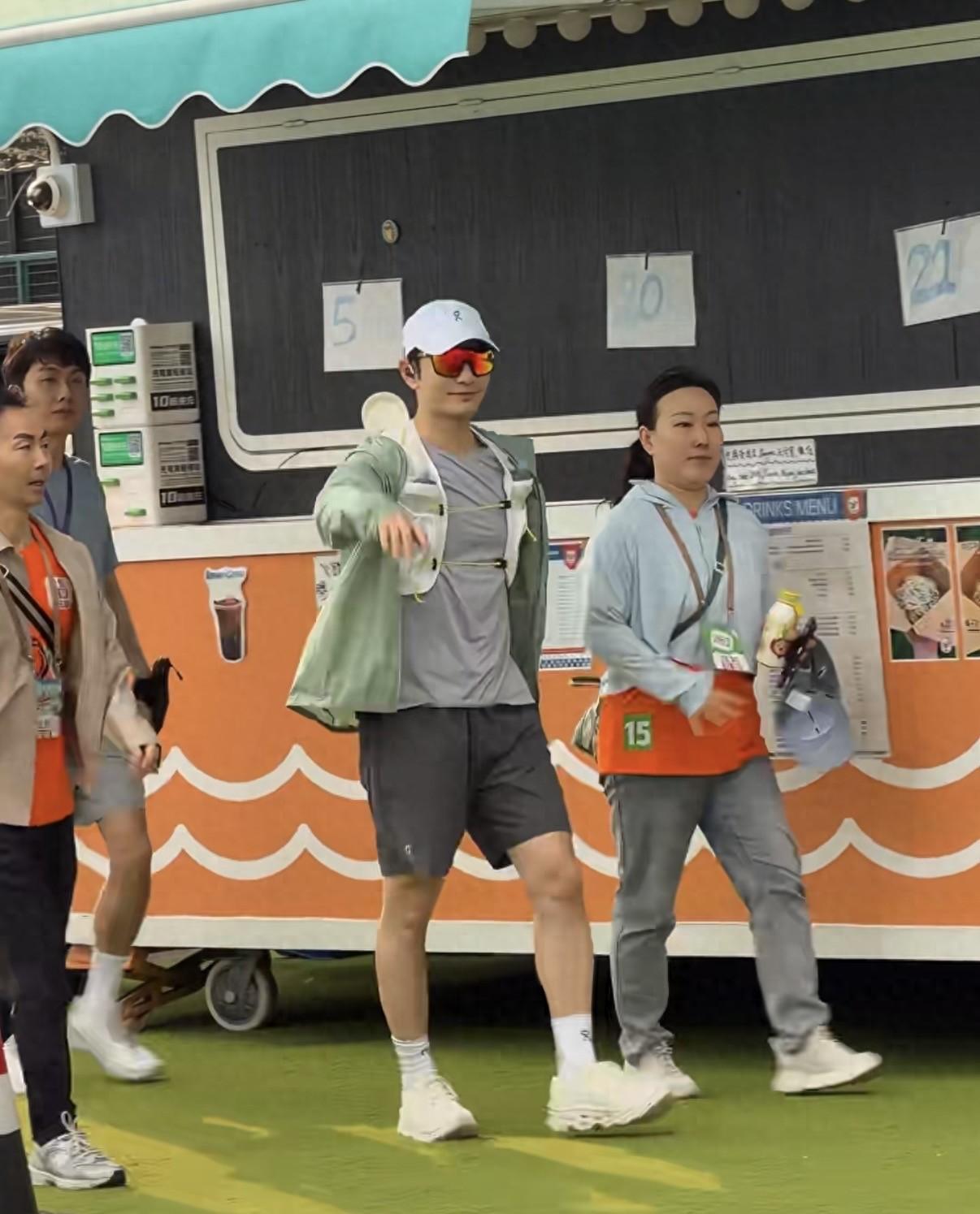 可能因爲黃宗澤這次是在家門口參賽,也沒好好捯飭就來了。他穿這熒光綠的T恤,戴了一頂黑色遮陽帽,完全沒有港劇男神的樣子。