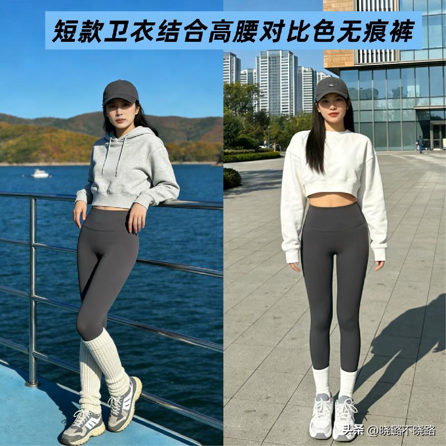 Ⅰ短款衛衣結合對比色的瑜伽褲,上短下長