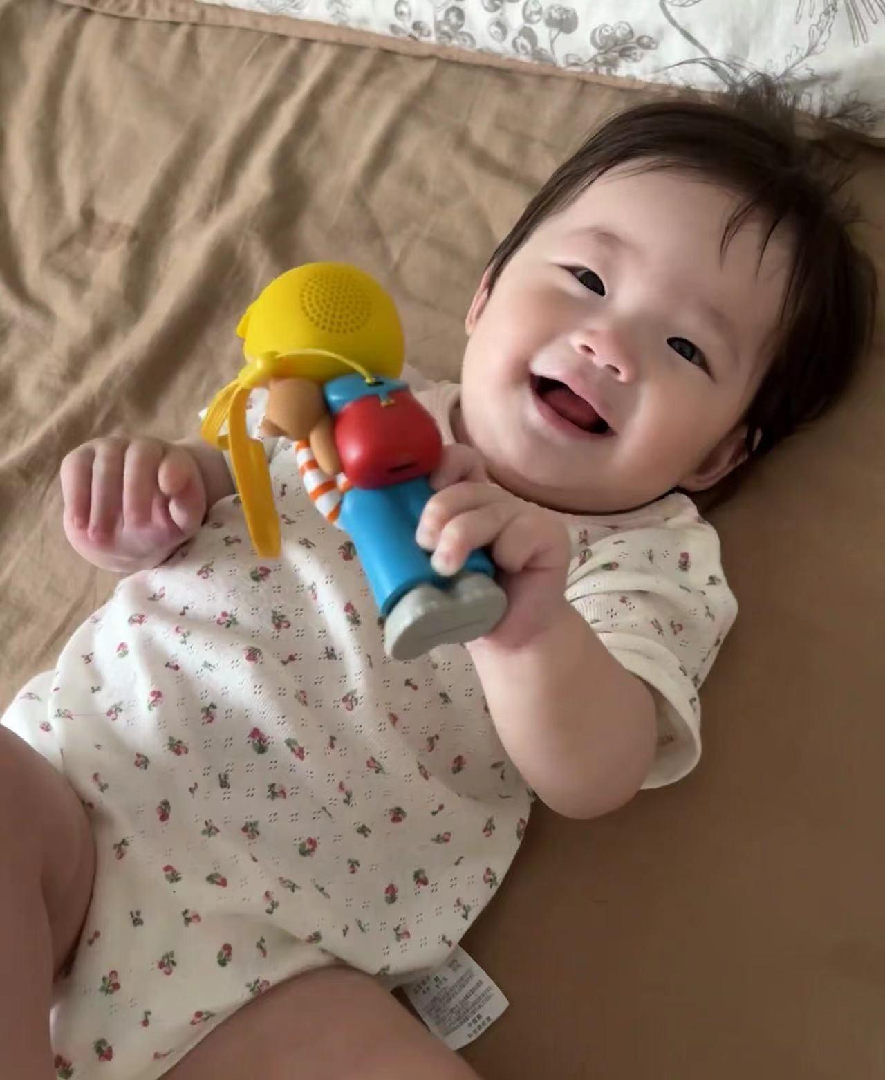 雖然像在對牛彈琴,但5個多月時,我說把玩具給媽媽,小瑤居然真的把手裏的搖鈴晃悠悠地給我了。