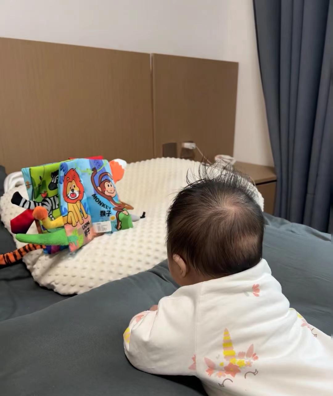 我每天對着3個月大的小瑤唱《挖呀挖呀挖》,一邊唱一邊還配合動作。結果她面無表情地看着我,那一刻,無動於衷這個成語具象化了。