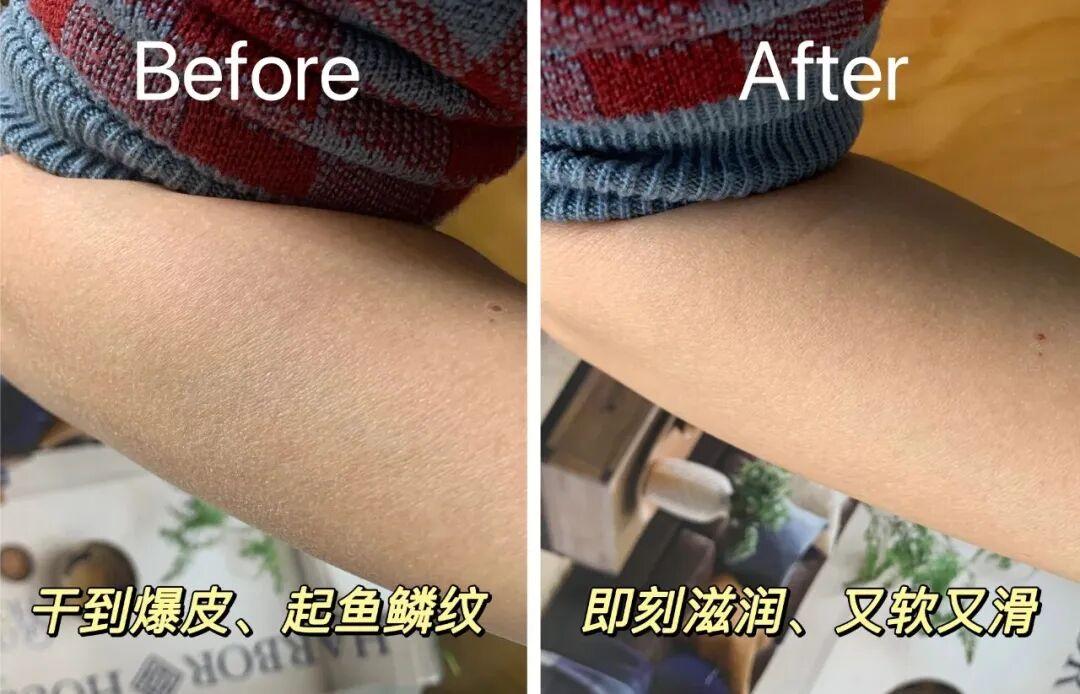 工作室的鷹鷹,是那種一年四季皮膚都幹得不行的人。有段時間她每天洗完澡就塗它,多年粗糙的“雞皮腿”竟然滑了好多。從摸砂紙變成摸A4紙,她自己滿意得不行。▼