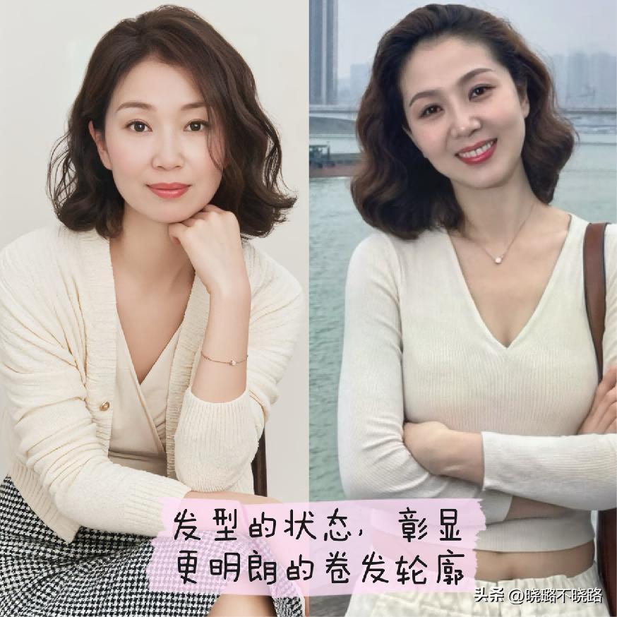 所以在今天的分享當中也建議各位女性,尤其在到了五六十歲的時候,儘量還是優先於選擇運用短款的髮型狀態爲主。第1款推薦給大家可以放心使用的就是短款,且是屬於微卷款式的髮型,這樣的弧度走向其實在視覺上是可以非常明顯的將我們的臉型輪廓進行優化的,而且最終所襯托出來的氣質也比較的優雅溫柔。