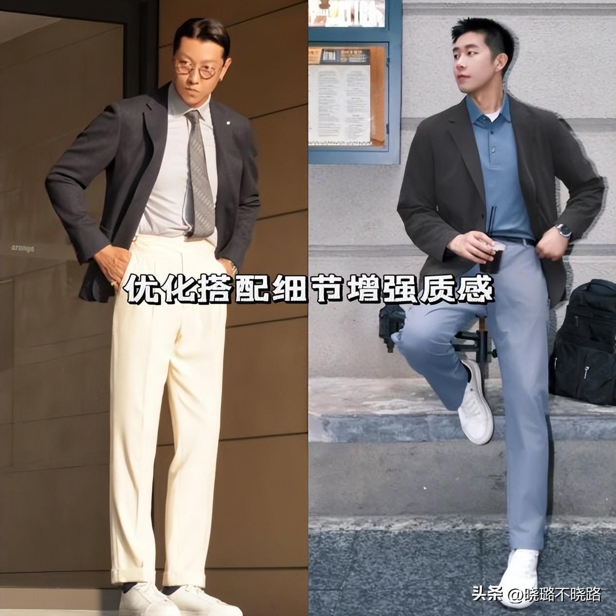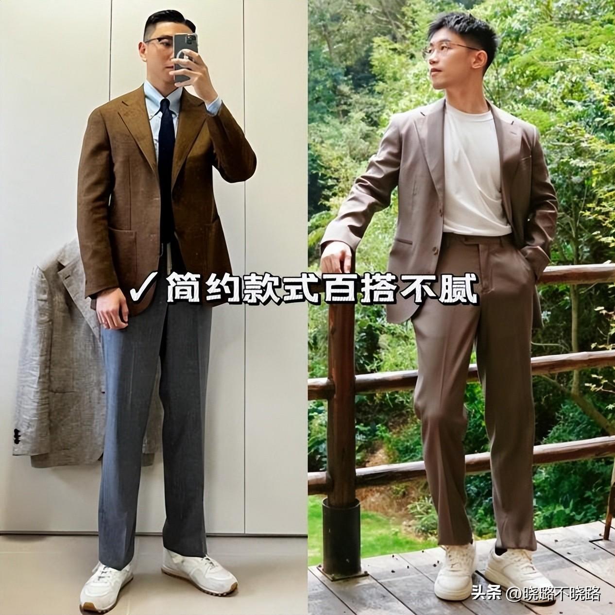 一、中年男人西裝褲配運動鞋,3個核心優勢,比皮鞋更適配