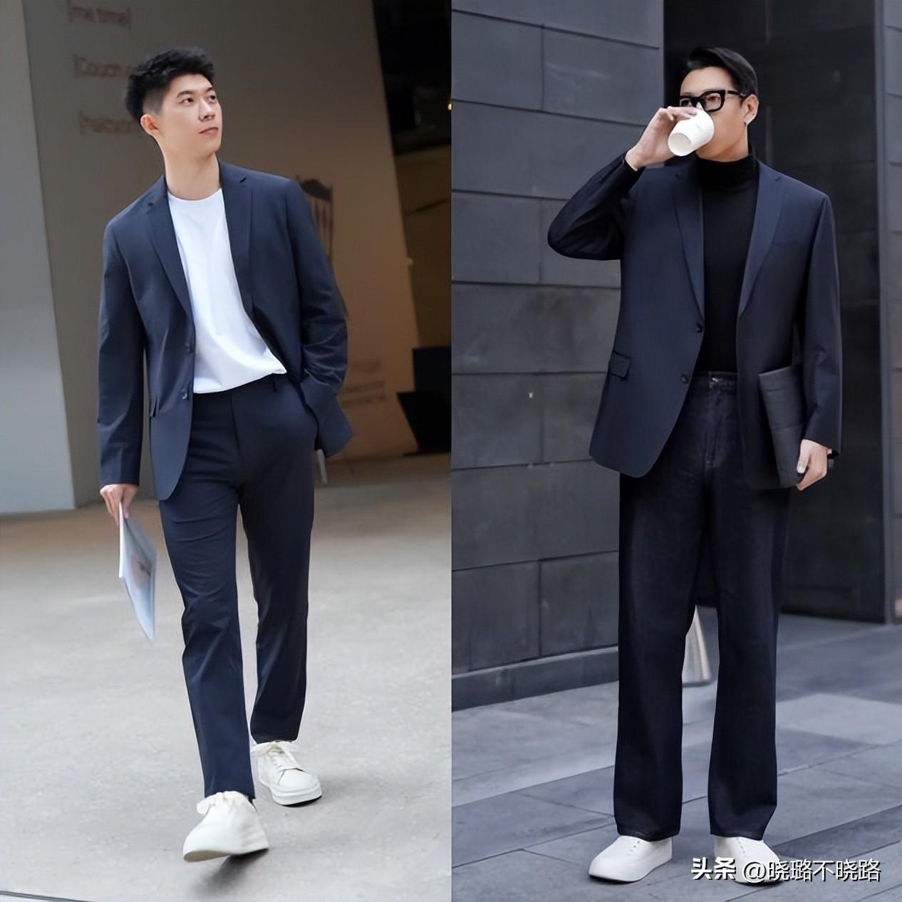 西裝褲自帶正式、嚴謹的基因,而運動鞋則代表着休閒、舒適與活力。當兩者相遇,便產生了一種奇妙的化學反應。運動鞋的休閒感能有效中和西裝褲的嚴肅,打破職場呆板的感覺,去除過多的職場刻板印象。這種“正式+休閒”的混搭,讓你徹底告別老氣橫秋的“老幹部”形象。