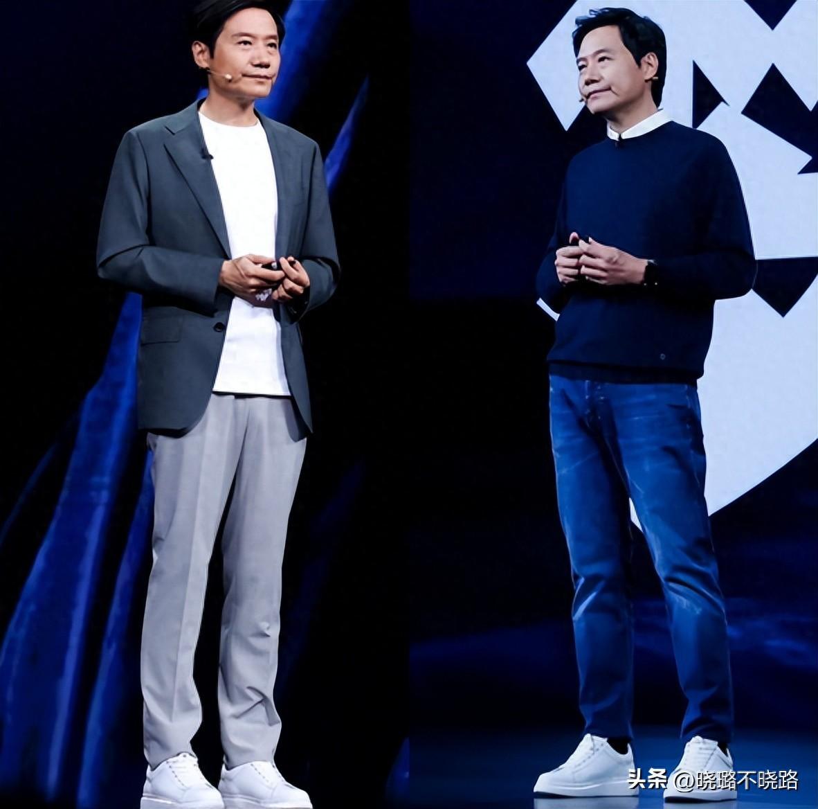 雷軍在小米發佈會、商務活動中,常常以深色西裝褲搭配簡約小白鞋出鏡,沒有亮麪皮鞋的沉重感,反而多了幾分清爽利落,褪去了企業家的距離感,多了幾分親和活力