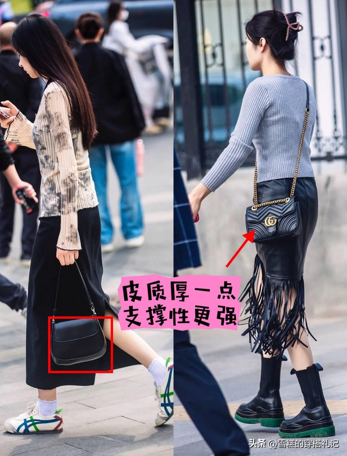 如果是日常逛街的話,一隻腋下包或者斜挎包足矣,千萬不要選擇扁塌款,精緻有型才更顯比例,背在身上也能提升時髦度,像一些款式簡約百搭的馬鞍包、劍橋包,容錯率就比較高。