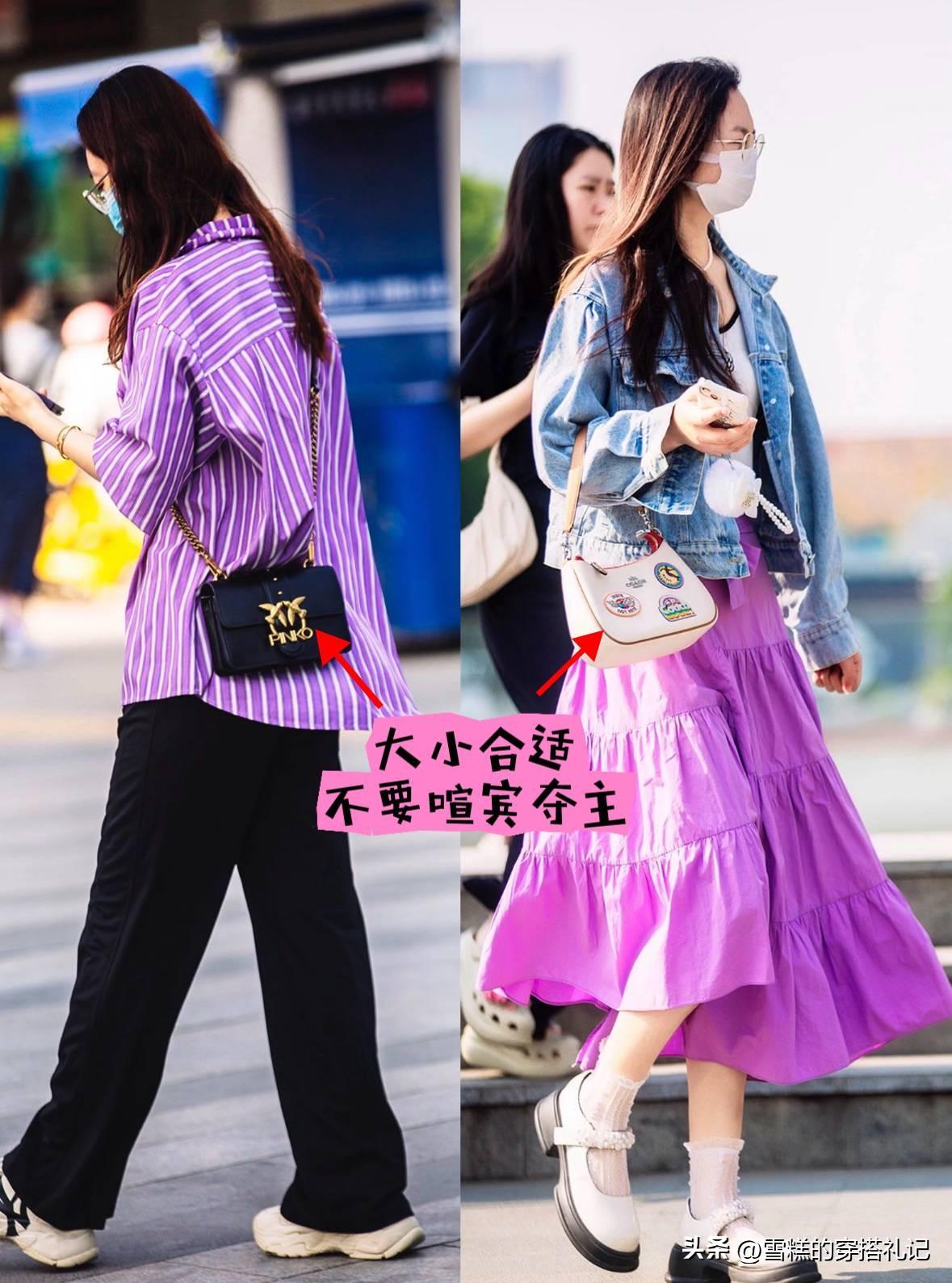 不必一味的追求實用性,而去選擇超大的帆布包,包包大小適中,尺寸與身材、穿搭匹配,背在身上纔不會顯得突兀,如果你是小個子,包底儘量不要超過跨部,否則很容易壓身高。