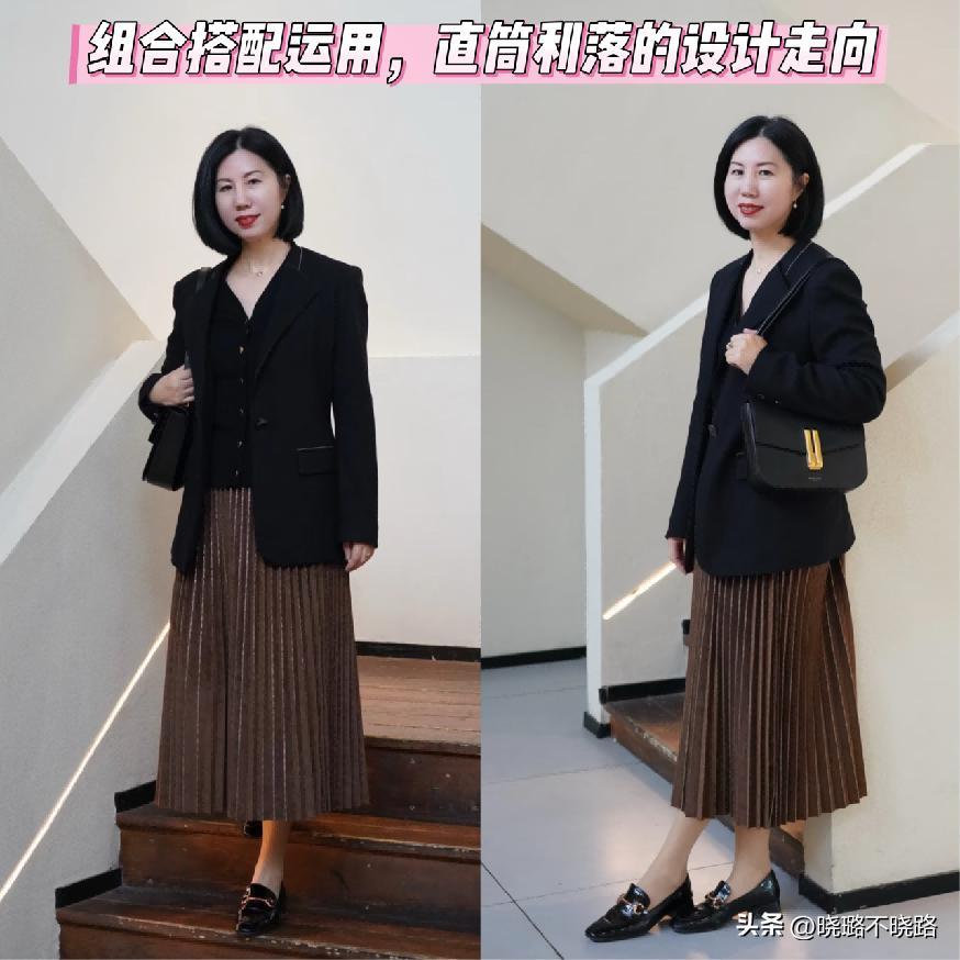 第2種組合搭配的運用,就更加適合體現利落又穩定感的直筒設計了!對於身形的狀態,也能夠將其襯托的又穩定又大氣,真的是非常好看,這對於上了年紀身形走樣,又或者是有一些小贅肉的女性而言是非常極具優勢的搭配。又或者運用於一些比較正式的場合當中,對於各位女性來說,大家完全可以放心的運用,尤其是下半部分的單品大家可以選擇觸感較爲硬朗的面料!