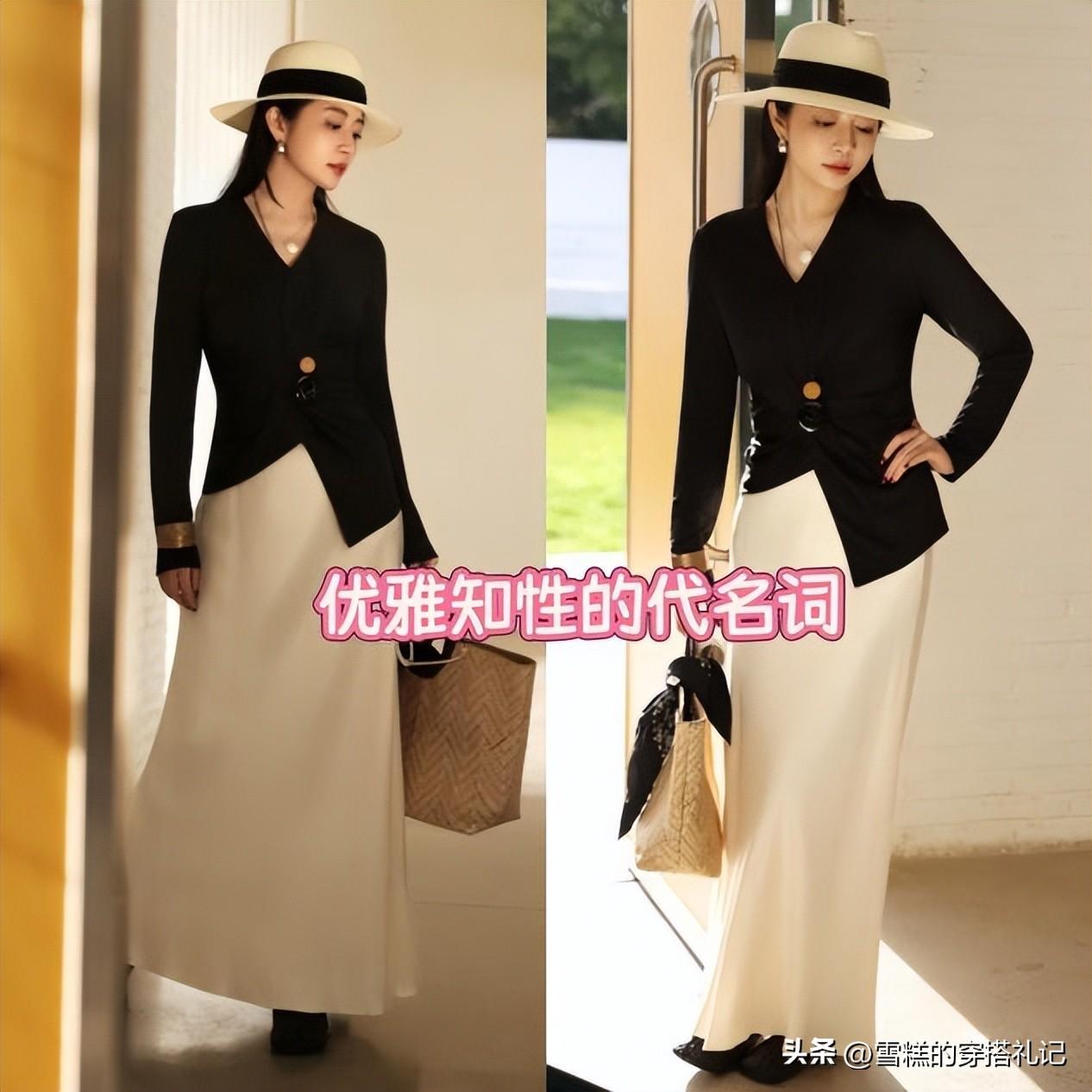 春天的溫柔,一半來自春光,一半來絲綢的溫和。請選用適配身材的直筒緞面裙,加上細腰帶點綴。針織的軟糯與緞面的光澤形成材質上的對比,既有春天的暖意,又有女性的嫵媚。V領設計能很好地拉長頸部線條,露出鎖骨,顯瘦效果滿分。