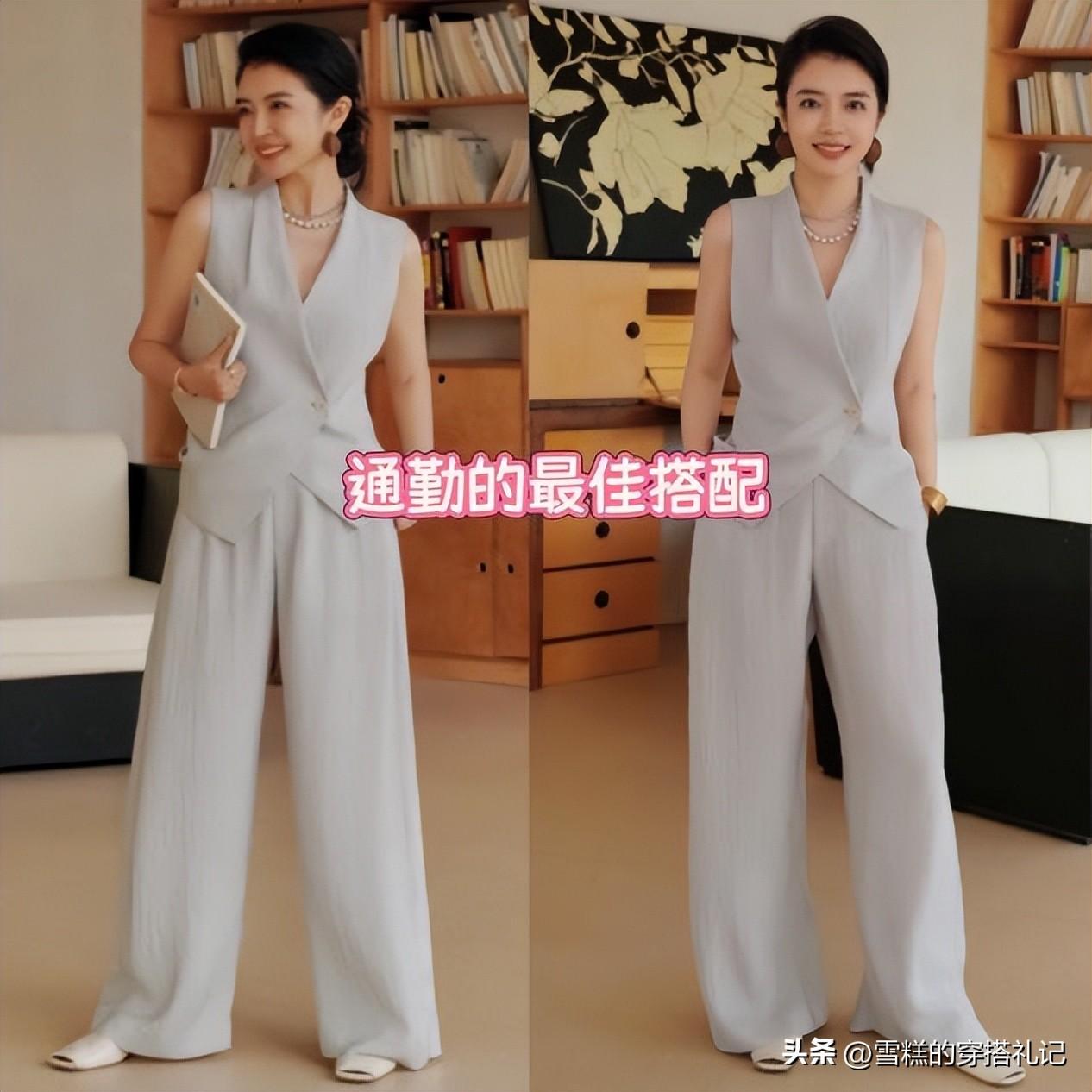 模板1:極簡通勤風——西裝夾克+同色系直筒褲