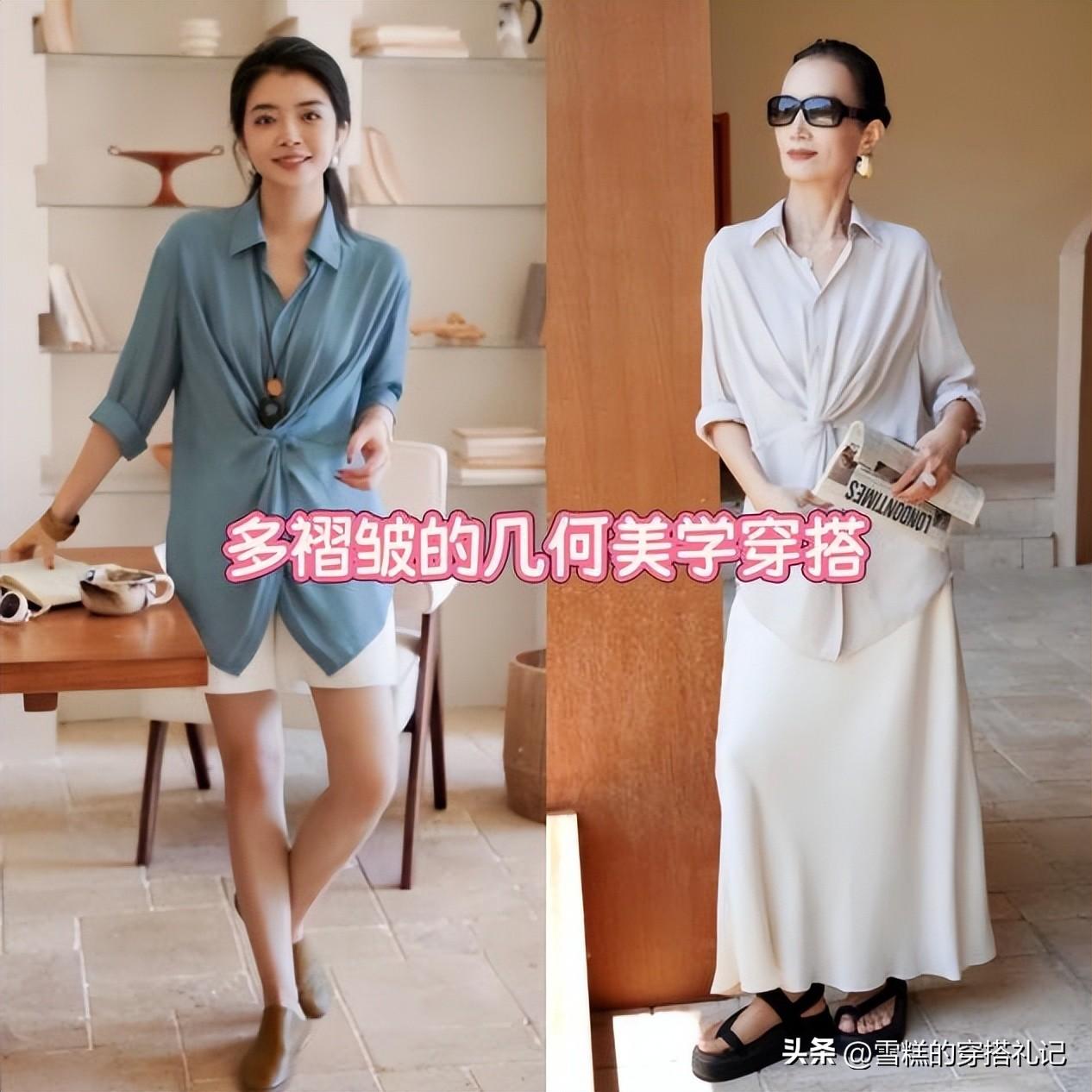 模板6:優雅知性風——不對稱襯衫+絲綢裙
