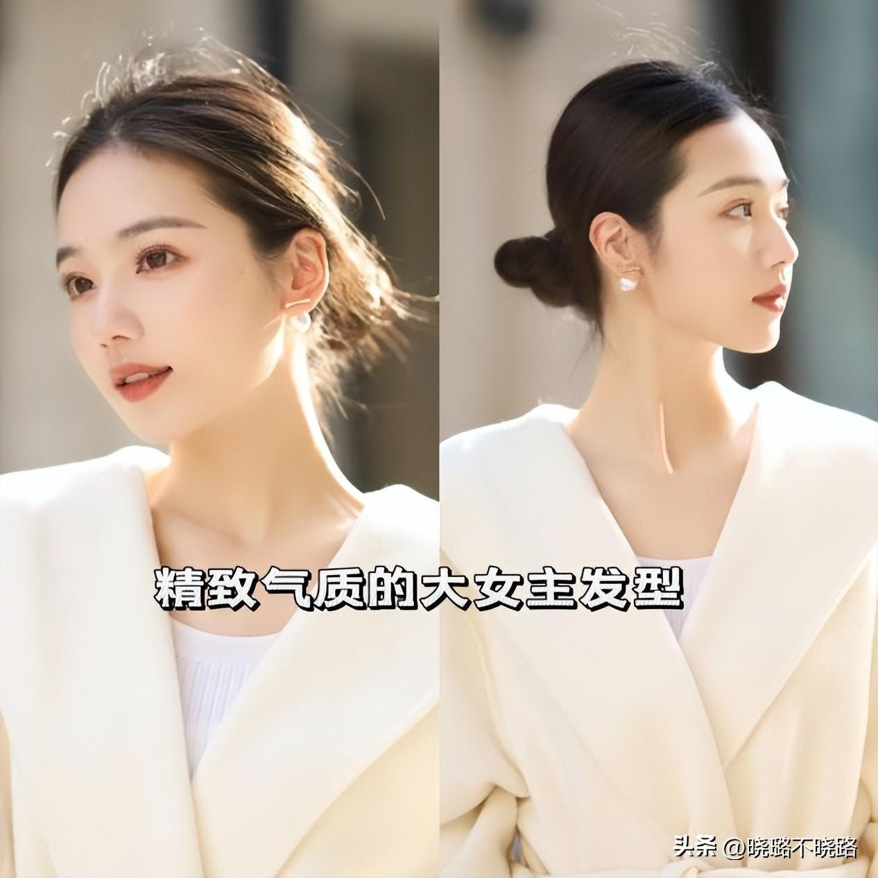 這是一款極具“大女主”氣場的髮型。先扎一個低馬尾,然後將馬尾分成兩股,交叉扭轉成麻花狀,再向上盤繞成花苞形狀,用U型夾固定。重點在於後腦勺要處理得飽滿圓潤,髮絲要光滑有光澤。花苞盤發能極大地優化頭型,讓後腦勺看起來非常立體。