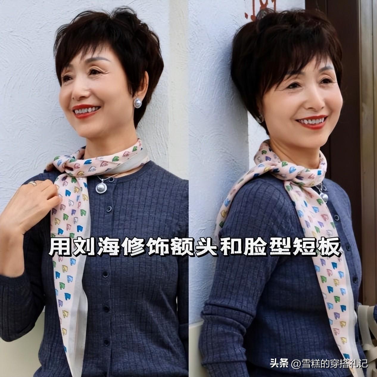 選擇短髮的時候,劉海是“減齡關鍵”,很多人覺得“無劉海顯精神”,實則對於中年女性來說,無劉海會暴露額頭皺紋、髮際線後移、額頭鬆弛等問題,反而顯老。