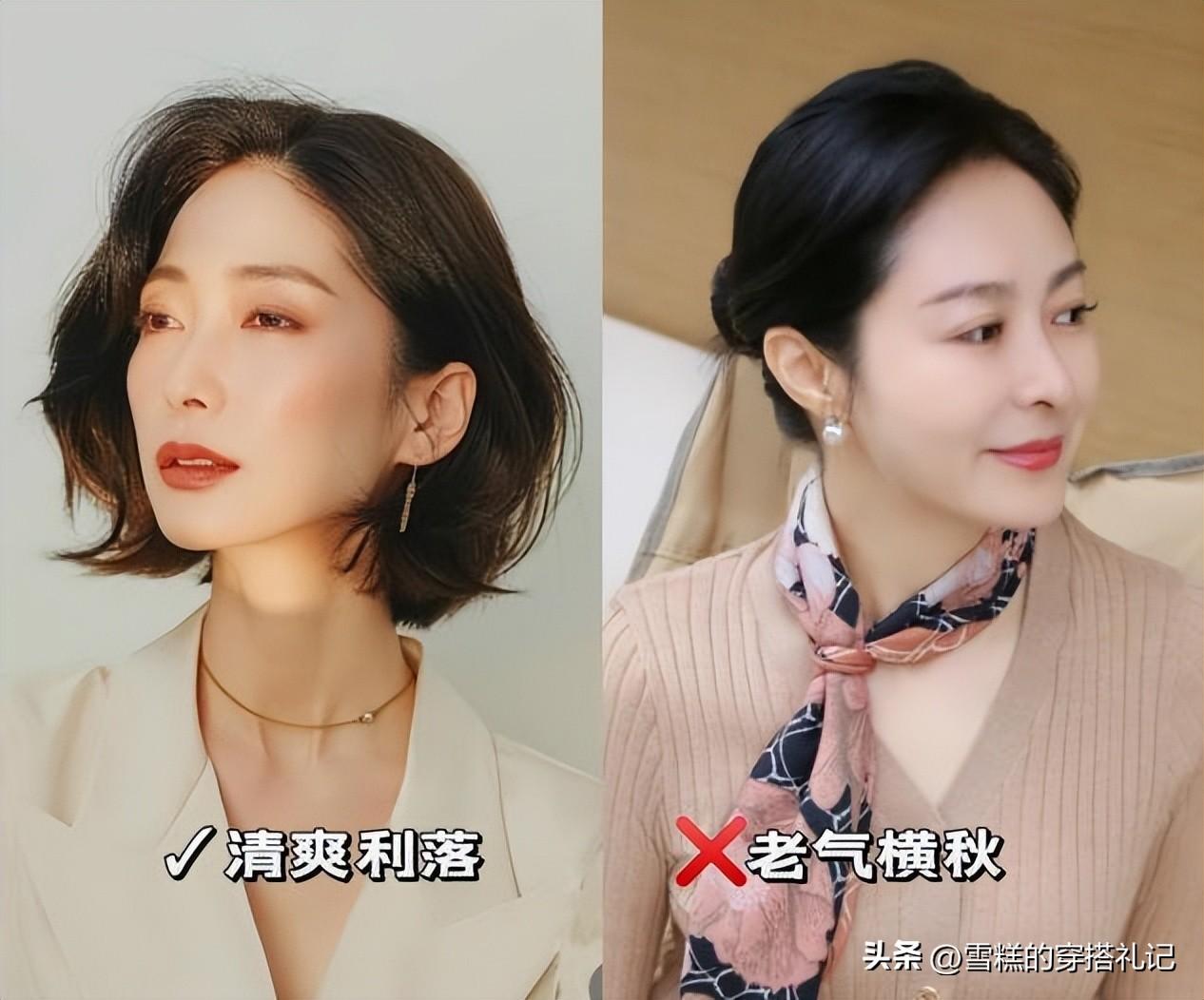 其實,中年女人的髮型選擇,從來不是“喜歡就好”,而是要貼合自身的面部狀態、髮質髮量和整體氣質。對比無數中年女性的穿搭案例不難發現,多數情況下,剪短髮比扎發更顯年輕。