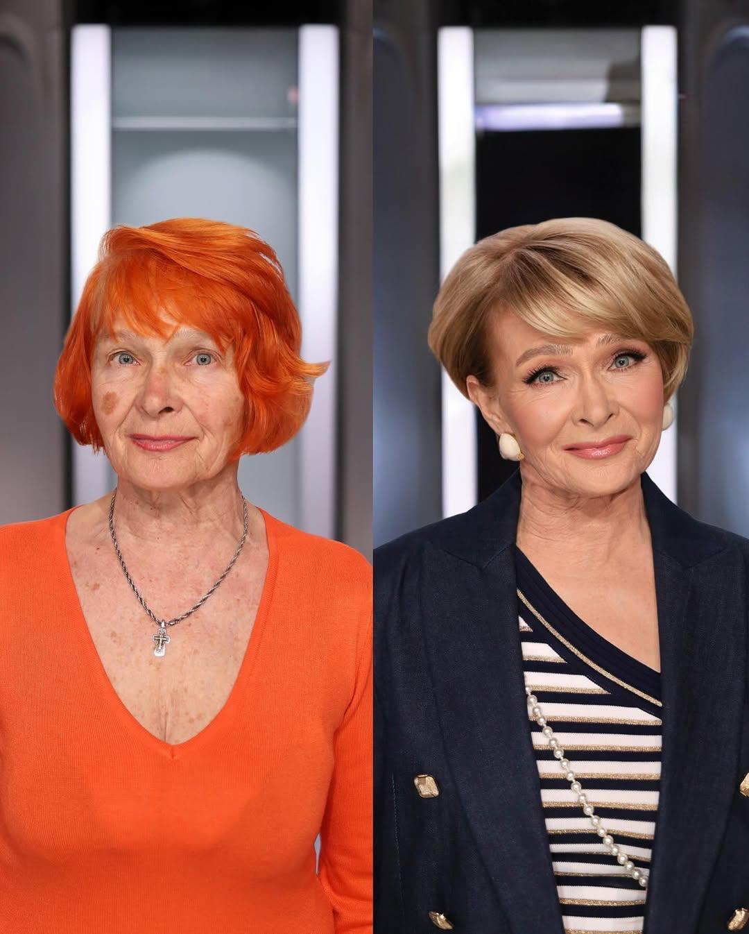 原來的橙色髮色顯得有點過於活潑;換成米棕色之後,看起來就像天生的健康髮色,一下子從70歲穿越回50歲,還有點像梅姨呢!