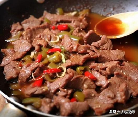 準備牛肉、小米椒、香蔥、生薑、蒜瓣、生抽、蠔油、食鹽、料酒、澱粉、胡椒粉、白糖、食用油。