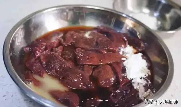 2、鍋里加水燒開,放入胡蘿蔔片、木耳,大火煮2分鐘,撈出瀝乾。豬肝擠幹水分,加入料酒、生抽、食鹽、澱粉、食用油,抓拌均勻後醃製20分鐘。