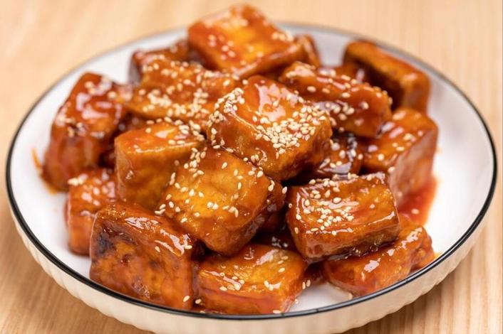 豆腐切塊,鍋內倒油,下入豆腐煎到兩面金黃,盛出來。留底油,下入3勺番茄醬、2勺白糖、1勺生抽、2勺醋,炒勻後重新下入豆腐,淋上少許水澱粉,勾芡到湯汁濃稠,撒上蔥花出鍋。