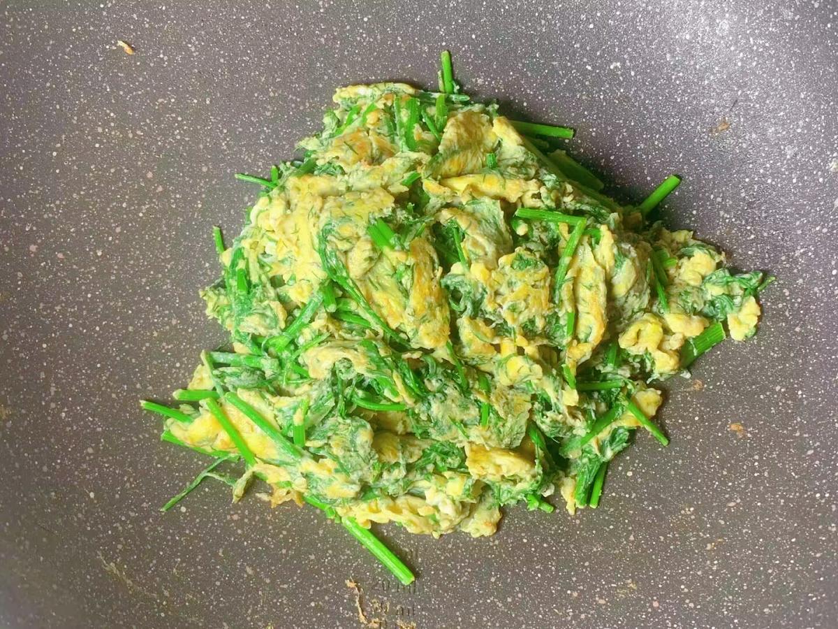 3、起鍋燒油,油溫7成熱左右倒入茴香雞蛋液,待蛋液定型後,翻炒均勻,炒至雞蛋金黃即可關火盛出,茴香很鮮嫩,非常容易熟的,掌握好火候,炒過火了茴香就不鮮美了。美味的茴香炒雞蛋就做好了,比韭菜炒雞蛋還要香,做法簡單,營養全面,大人小孩都愛喫。