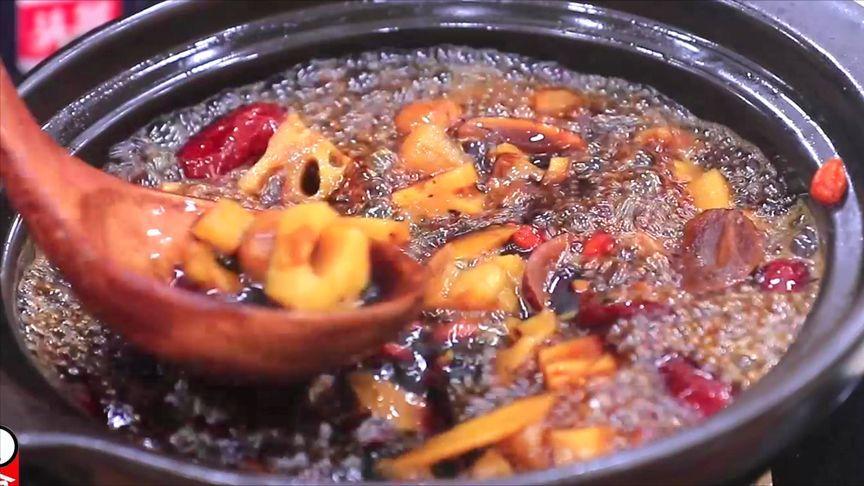 2、然後把準備好的原料倒入砂鍋中,倒入適量的清水。先用大火燒開,再轉小火燉煮20分鐘,把蓮藕燉熟,20分鐘以後,倒入枸杞,再燜煮一會,紅棗蓮藕湯就做好了。