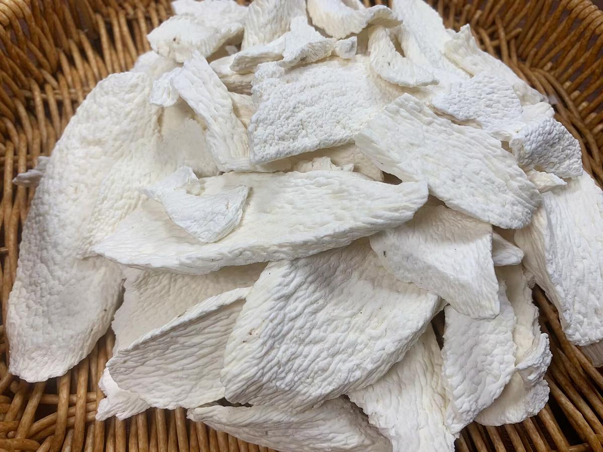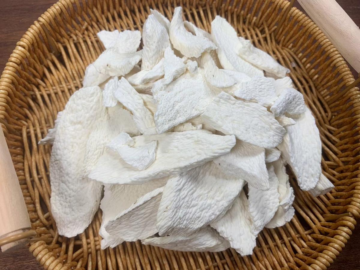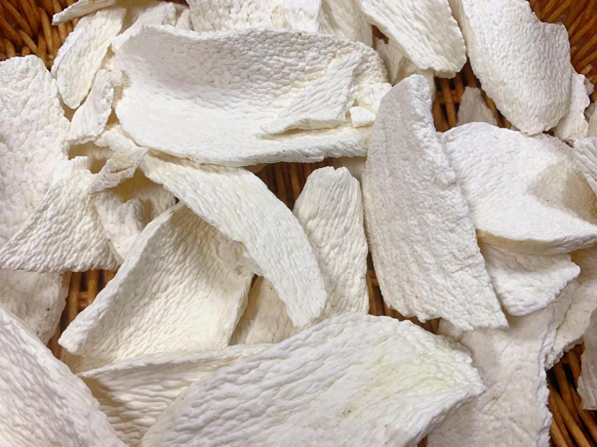 經過5天左右的時間,山藥片曬好了,顏色雪白,手摸上去還有一層澱粉,把曬好的山藥幹放在食品袋內封好,不要受潮,放在陰涼的地方存放,隨喫隨取,特省事。泡水喝需要用開水泡,把山藥片泡透飲用就可以。
