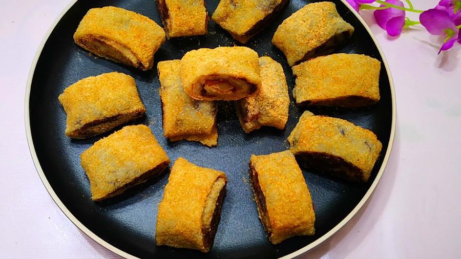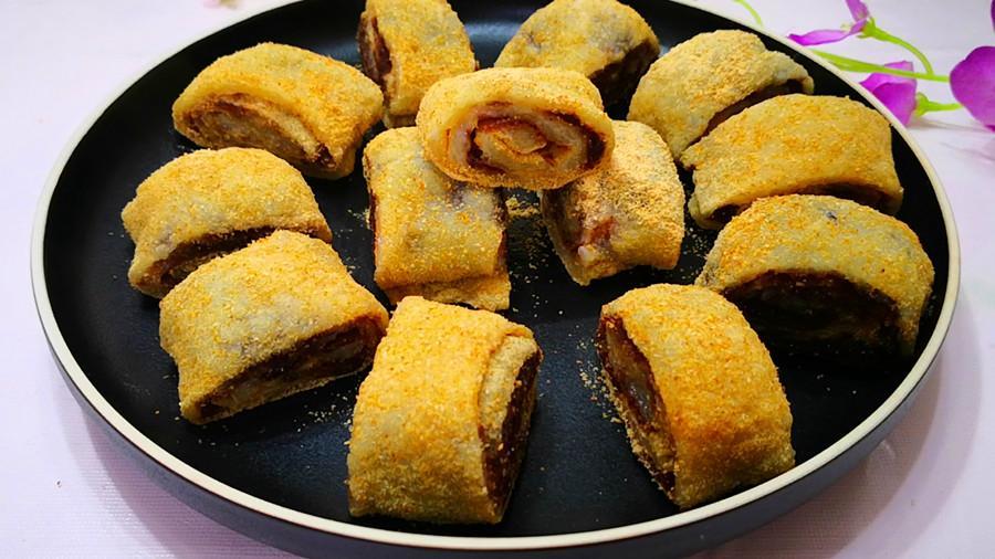 第四種:驢打滾,這是東北過年常備的零食,主要是由豆麪製作,健康營養,黃色在古代是帝王的象徵,因此黃色在過年時寓意金玉滿堂,而且做法簡單,口感香糯粘滑,特別好喫。