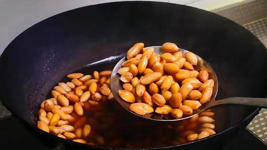2.再取適量的花生米,洗淨後放到鍋中,加入適量的清水,大火燒開後再繼續煮二十分鐘,將花生米煮熟後,控水撈入盤中備用。