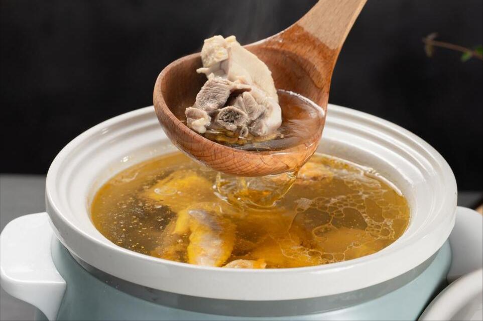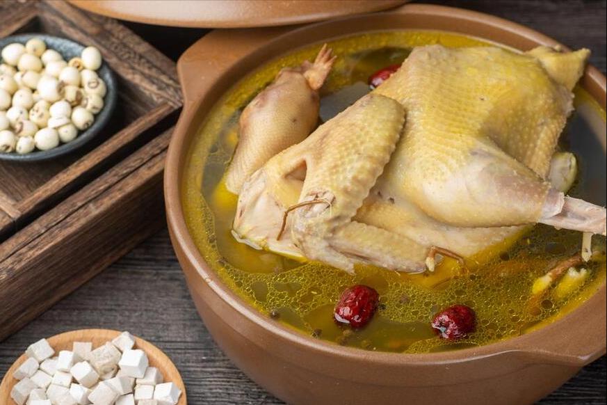 2、下面將其倒在鍋子裏,然後往其中添上適量的清水,然後放入蔥姜、料酒,焯水後撈出。重新起鍋,把雞肉倒進去,然後放上紅棗、山藥、蔥姜,蓋上鍋蓋燉上1個半小時,最後放上枸杞,來點鹽、味精調味,繼續燉上5分鐘左右,出鍋開喝。