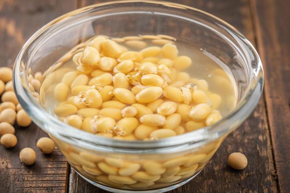 2、把黃豆淘洗乾淨之後,需要接一盆水,將黃豆倒進去浸泡着,泡上5、6個小時這樣,最好泡一整個晚上,然後第二天早上打豆漿喝。做完這一步,浸泡之後,很多人會選擇直接來打豆漿。