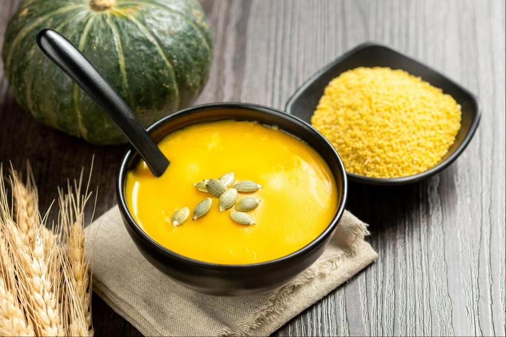 2、趁着煮小米的時間,我們將南瓜清洗一下,洗淨後切開,把瓤子挖掉,切成小塊。等小米煮到沸騰以後,再將南瓜倒進去,然後將蓋子蓋上,轉爲小火繼續煮,煮上1個小時左右的時間,小米和南瓜都完全熟透了,變得軟糯,即可關火,盛出來開喝。