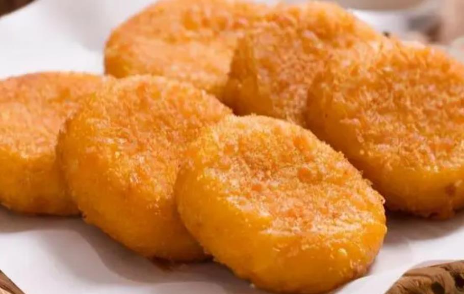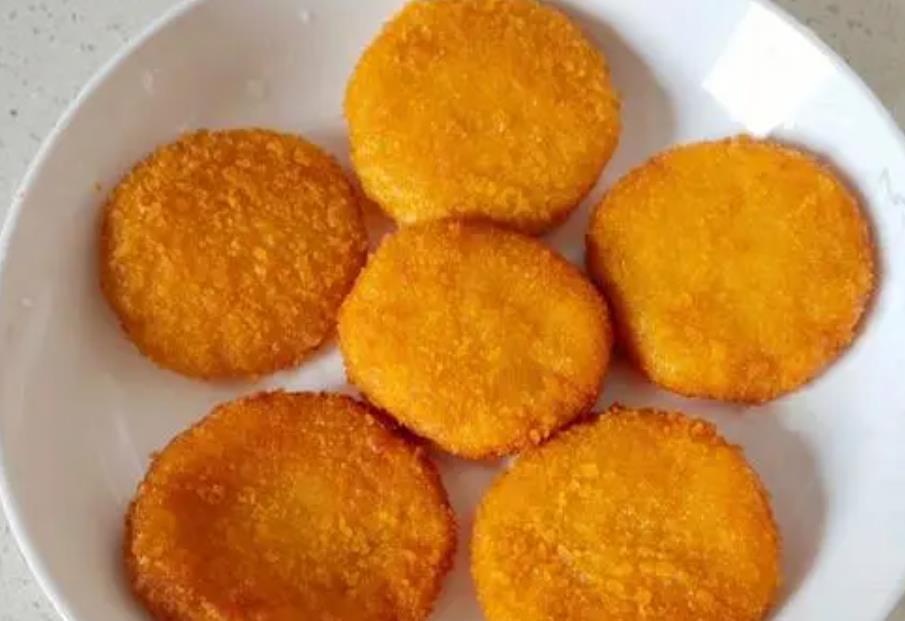 用到:南瓜、糯米粉、白糖、麪包糠、食用油