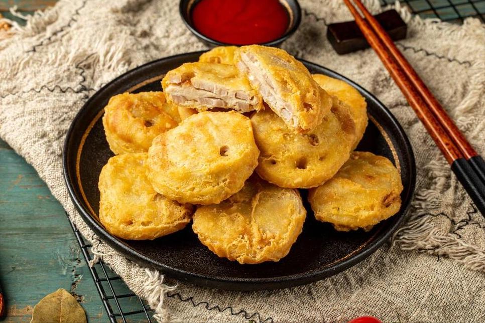 炸藕盒,切忌用水調麪糊,2個技巧要牢記,又酥又脆,焦香不油膩