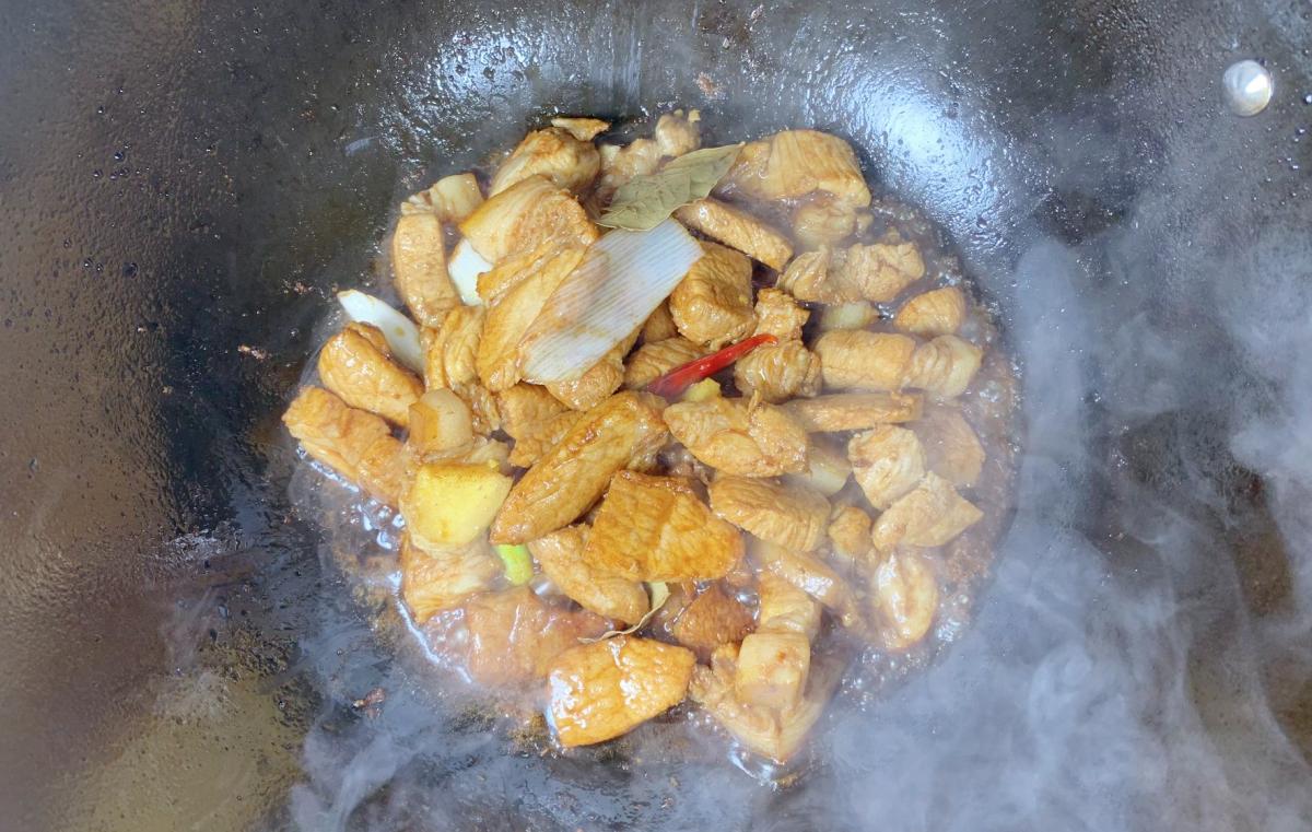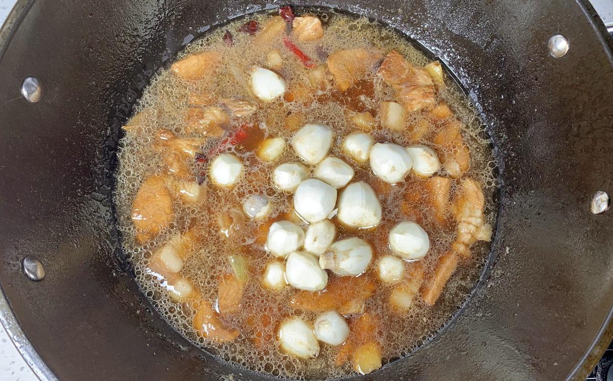 步驟:茨菇提前泡發,洗淨備用。五花肉切塊,姜蒜切末、熱鍋涼油,將五花肉塊煎至兩面金黃。加入適量料酒,將姜蒜末炒香。放入茨菇,翻炒均勻。加入適量的高湯或清水,煮沸後轉小火慢燉至五花肉熟爛。加入適量食鹽、雞精、生抽、糖進行調味,攪拌均勻。燉至湯汁濃稠,即可出鍋。