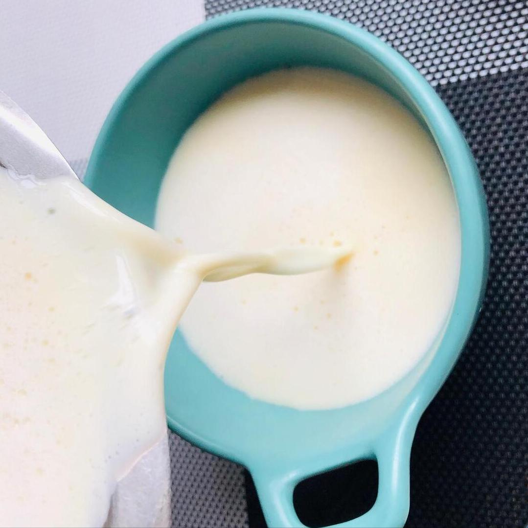 6、等豆漿的溫度,晾涼了之後,就可以把白醋水倒進去了,倒的時候也需要不停攪動,直到豆漿結塊,變得像豆花一樣,就可以停止了。將其倒在專門做豆腐的容器內,沒有的話就找一個,底部可以漏水的模具。