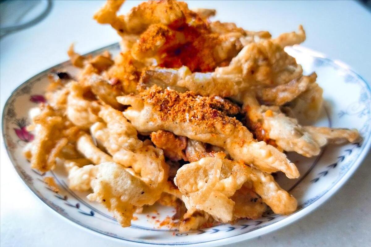 看到這裏,大家是不是以爲,我挺喜歡喫蘑菇的?實際上還真沒有,不管是炒着喫,還是煮蘑菇湯,我都接受不了,唯一能夠接受的喫法,就是幹炸蘑菇,炸出來沒有蘑菇味了,自然喜歡得很,一口一個焦香酥脆。